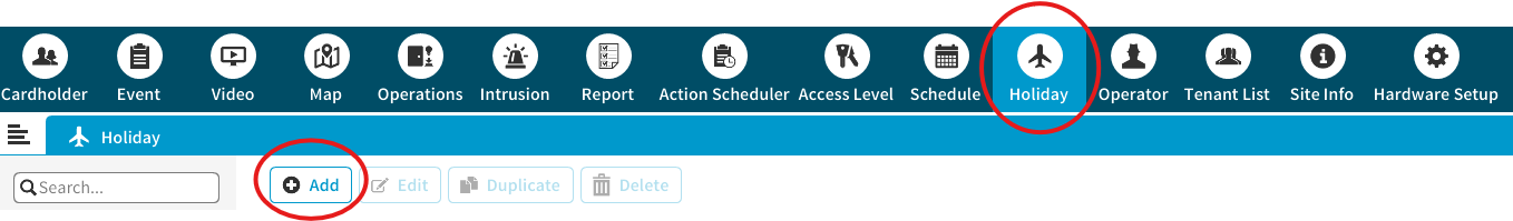 - Click on the Holiday tab, then Click on the Add button.