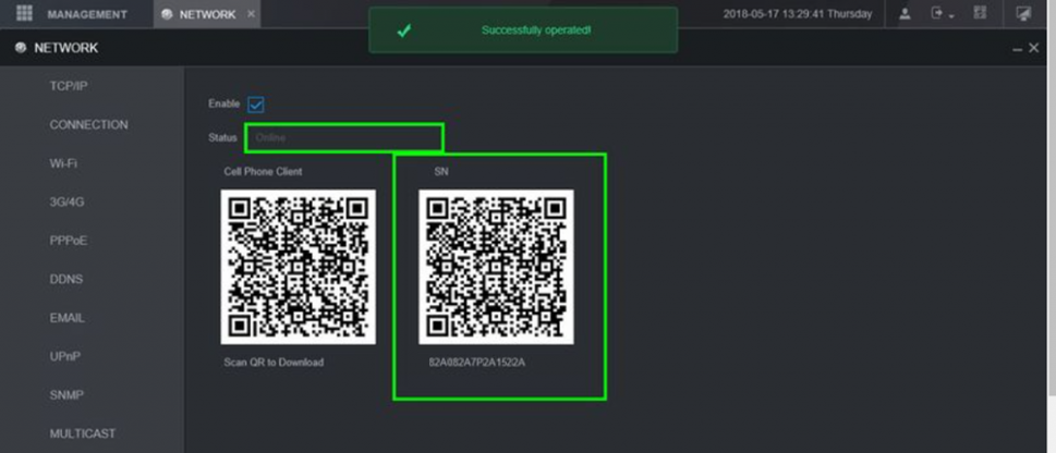 - You should see a QR code displayed along with your device’s SN/serial number.
